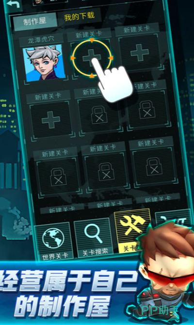 游戏内也有制作屋的玩法模式,玩家可以在关卡制作的内容当中,点击空白的插槽,随后新建关卡,制作和主线关卡不同的内容。