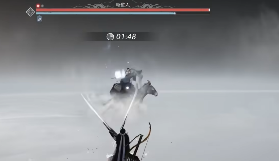 当睡道人骑在那只高大威猛的驴背上,他的前蹄会抬起,随即挥出一记拂尘攻击。这个挥击动作有点像是一个略微隐蔽的前奏,你需要根据他的动作去掌握节奏。每次攻击的频率虽然不高,但攻击范围大,千万不能掉以轻心。