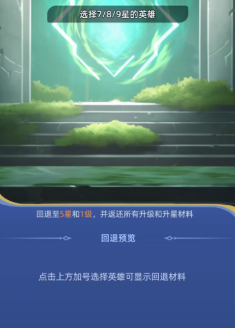 关于高阶英雄的资源回退机制:英雄等级达7~9级时,材料返还率达100%,但需消耗“逆转灵珠”作为操作凭证,该道具仅可通过每日登录礼包获取;而10星级及以上英雄的完整返还(含觉醒材料等全部投入),则需使用“逆转魔晶”,该道具限定产出途径为巅峰商店与每周限时礼包。玩家需提前规划资源获取节奏,确保关键道具储备充足,方可顺利完成高等级英雄的策略性重置。