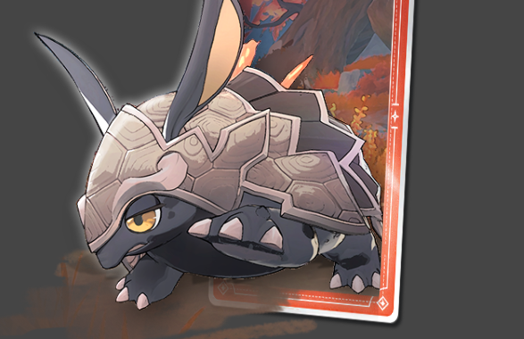 该角色处于幼年阶段,后续可进化为覆甲犰,最终形态为熔岩犰。其主动技能“火热跃击”表现为蓄力滚球式突进,落地后对目标周围区域造成三次范围伤害,每次伤害倍率为132.3%火属性伤害,并附加持续10秒的强制嘲讽效果。