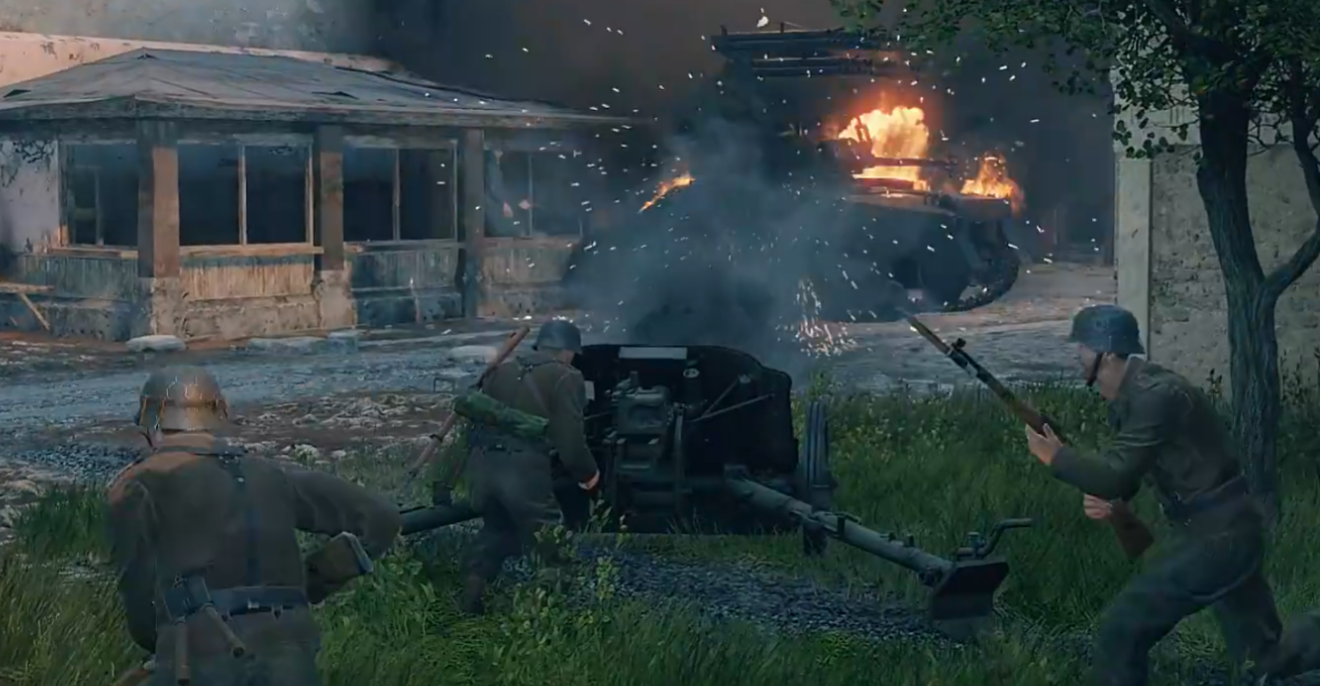 游戏高度还原1940年代真实战场生态:武器建模基于历史图纸复刻,载具性能参数严格对标实装型号;地图场景涵盖东欧白桦林、中欧石砌堡垒群、西线典型乡村聚落等多元地形,建筑破损、弹坑纹理、碎石飞溅等物理细节经PBR渲染强化;环境音效采用实录枪械击发、火炮膛震、螺旋桨啸叫等声源,配合动态混响系统,营造沉浸式临场压迫感。