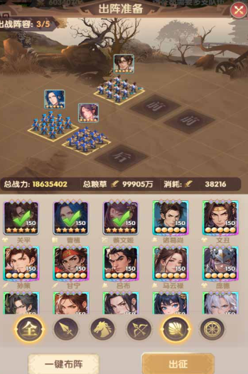 开局阶段,武将获取是首要任务。酒馆招募为随机抽取新武将的主要渠道,而客栈宴请则定向产出指定武将的将魂——两者功能明确区分,不可混淆。值得注意的是,除上述方式外,玩家在推进主线过程中逐步占领新主城后,可进入“拜访”系统,通过提升目标武将好感度,以道具兑换形式直接招募高潜力将领。战斗布阵环节支持最多5名武将同时上阵,且国战强制要求满编出征;每位武将头像亮起即代表战役数值蓄满,点击即可释放专属技能。若倾向简化操作,界面右下角“自动”按钮可实现智能索敌与技能释放逻辑,大幅降低手动门槛。