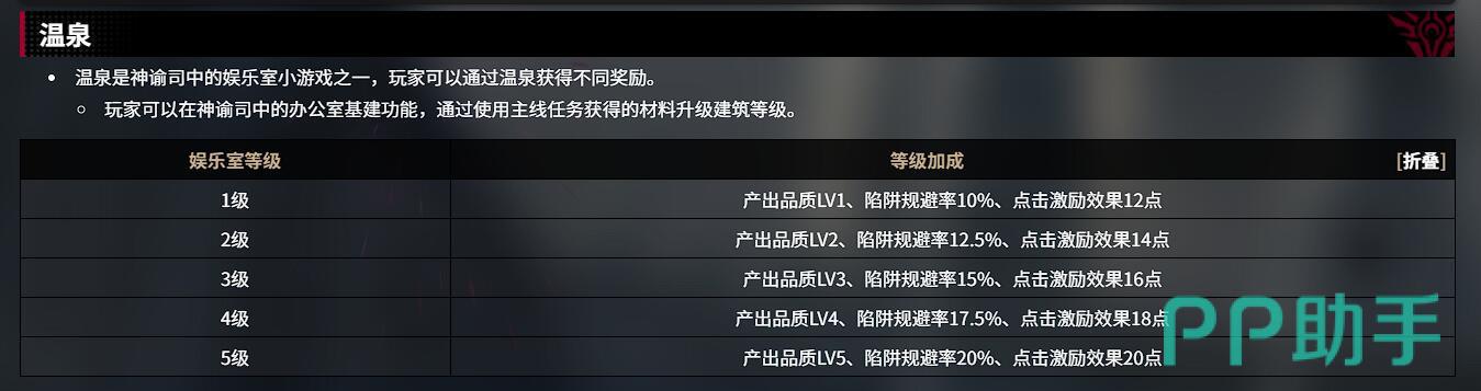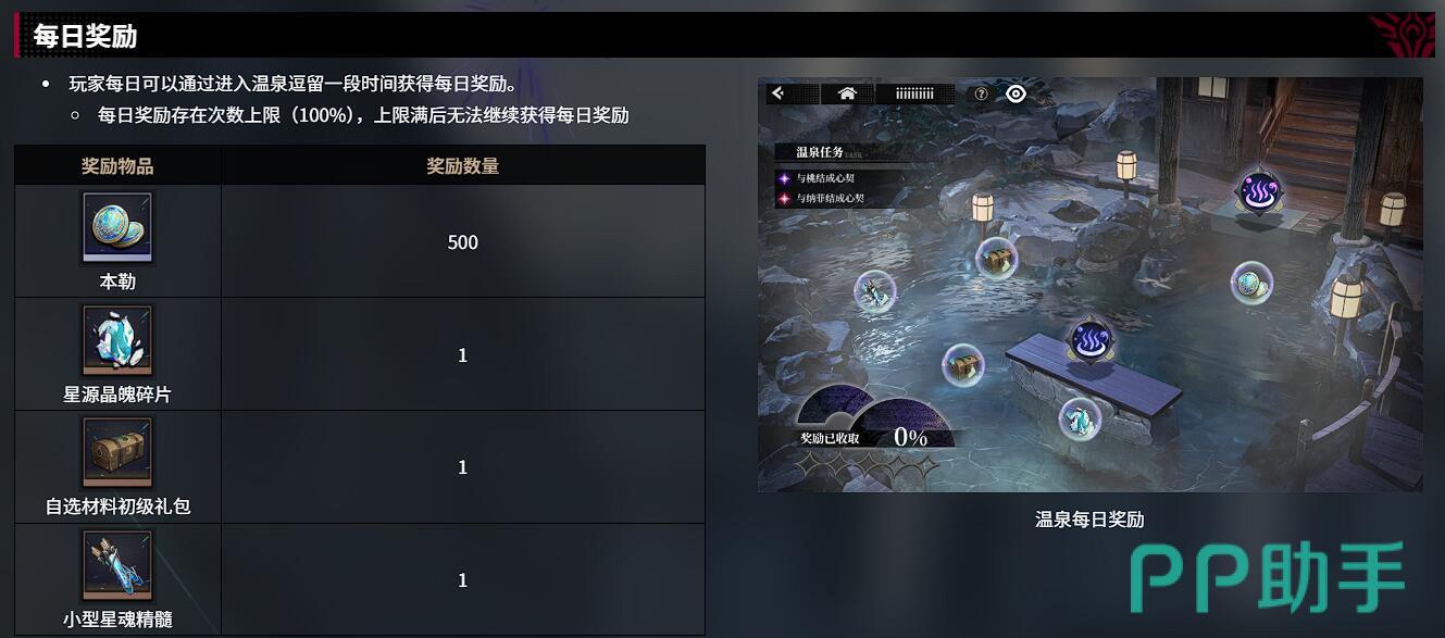 温泉系统的基础功能是提供稳定的资源获取渠道。玩家每日进入温泉并停留3分钟即可领取100%的奖励,包括本勒、星源晶魄碎片、自选材料初级礼盒和小型星魂精髓等实用道具。奖励品质与娱乐室等级直接挂钩,等级越高,产出的资源数量和稀有度也随之提升。1级温泉仅提供基础奖励,而5级温泉则能额外增加20%的陷阱规避率和点击激励效果,大幅优化资源收集效率。建议优先将娱乐室升至3级,以解锁LV3品质奖励和15%的陷阱规避率,为后续玩法奠定基础。
