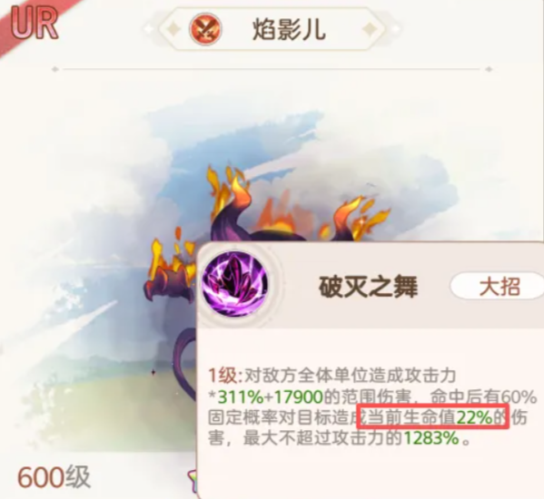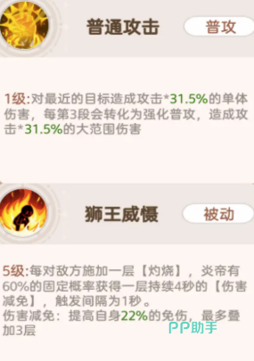 小炎龙普攻即附带约30%单体伤害,并随攻击段数递进强化;第三段后火球伤害提升至42%,爆炸时可扩散范围输出。被动“炎龙之力”提供灼烧效果强化,并有固定概率触发“龙之刃”状态:每层提升21%持续伤害,最多叠加三层;其范围攻击不仅命中率高,更拥有高概率施加20秒灼烧,且每次引爆单层灼烧均可造成375%真实伤害,大招伤害量级极为可观。