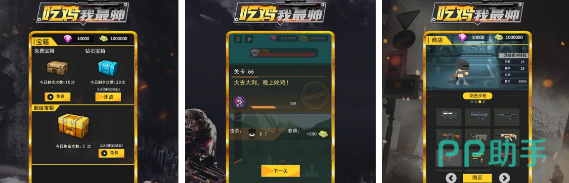 整体采用的是经典的大逃杀玩法,和和平精英特别相似,其中有多样化的武器系统,您可从不同的枪支中随意挑选,在面对更多敌人时,需要和自己的好友共同合作才能射杀敌人,首先开局后将会利用跳伞的方式,降落到地图的任意地方,通过到处收集资源以及搜寻武器的方式,和敌人展开刺激战斗。
