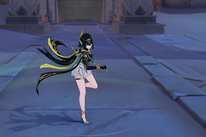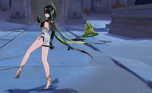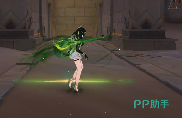 除了基础攻击外,奈芙尔还可施展下落攻击,通过凝聚草元素力量从空中坠击地面,对目标区域内的多个敌人造成范围性草元素伤害,适用于清场或打断敌人动作。她的元素战技允许角色向前突进,并在终点释放一次大范围草元素爆发,有效改变战场位置的同时施加元素影响。释放后,奈芙尔将进入“影舞状态”,在此状态下继续消耗体力可强化后续动作表现,提升整体输出节奏。