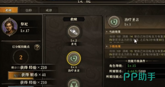 技能点的获取还是很有规律性的,基本上每提升5级就能得到一个技能点。例如17级就可以获得三个技能点,大家可以根据实际的需求去分配。可以把点数给治疗圣贤,在40级之前,技能全部都可以免费重置,如果领悟技能就需要耗费一定资源,建议大家需要谨慎思考。