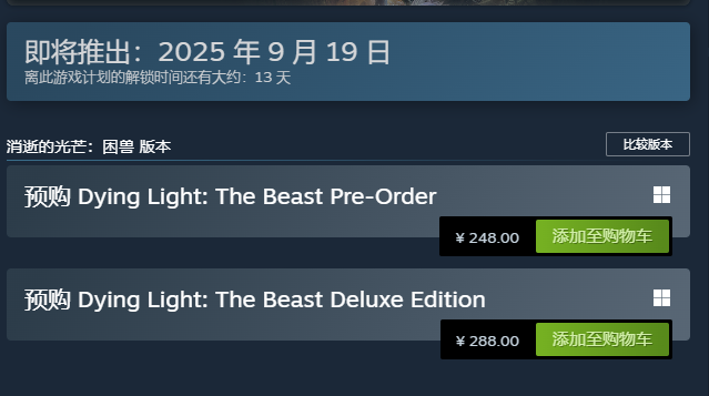 消逝的光芒困兽的发售价格是多少?这是许多玩家近期关注的重点问题。游戏将于9月19日正式上线,目前在Steam平台开启预售,玩家可以提前将游戏加入愿望单或直接预购,以便在上线后第一时间收到通知并进入游戏世界体验全新内容。