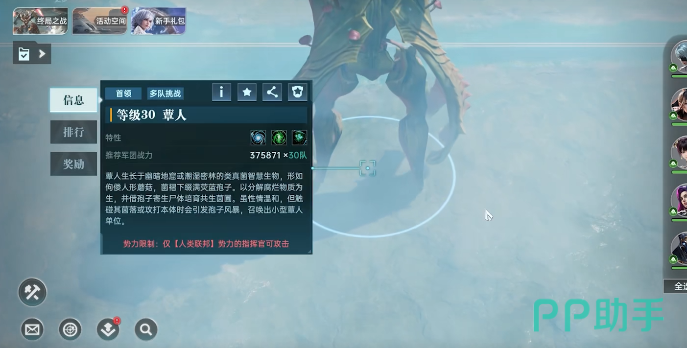 随后,玩家必须定位并击败等级为30的蕈人单位——注意:此目标仅对人类阵营控制下的军事单位开放攻击权限,其他势力无法对其造成有效伤害。成功击杀后,将自动获得关键前置道具“活性共生孢子囊”,该物品不可交易、不可丢弃,且必须由玩家直属舰队携带返回。
