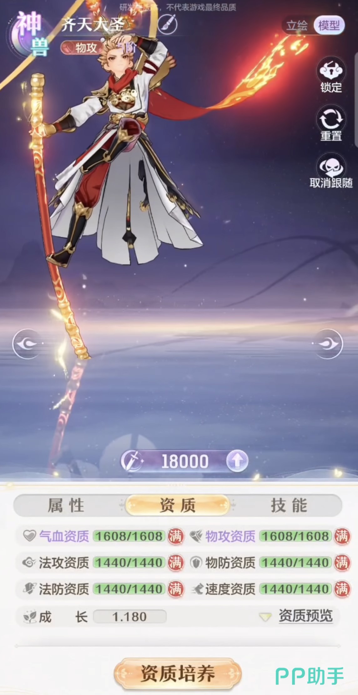 尽管目前神兽资质已处于满值状态,无法进一步提升,但未来版本中资质将成为影响神兽强度的关键因素之一。若想增强神兽的输出能力,现阶段应重点关注属性分配与技能配置。以孙悟空为例,其定位为【物攻】型神兽,因此在属性成长上应侧重攻击数值的积累,同时适当提升生命值,以确保其在战斗中具备持续作战的能力。