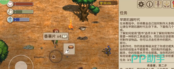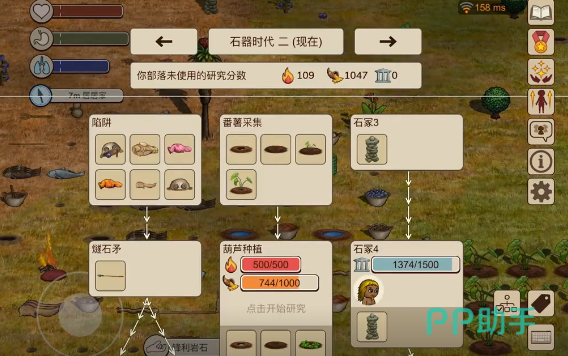 玩家还可以自行的点击,然后去选择不一样的研究方向,通过获取对应的分数,然后去完成研究。很多的玩家并不了解在石器时代到底应该如何操作,在这一个阶段玩家所需要做的,那自然就是解锁挖掘棍的制作。之后还可以继续的研究扁食类别,制作一些番薯片,这些食物就能够有效增加饱腹感。当然除了这一种食物之外,也可以制作其他的食物,这方面其实没有太多的限制性。玩家如果不知道该如何去玩,不如就看一下这一方面的内容。