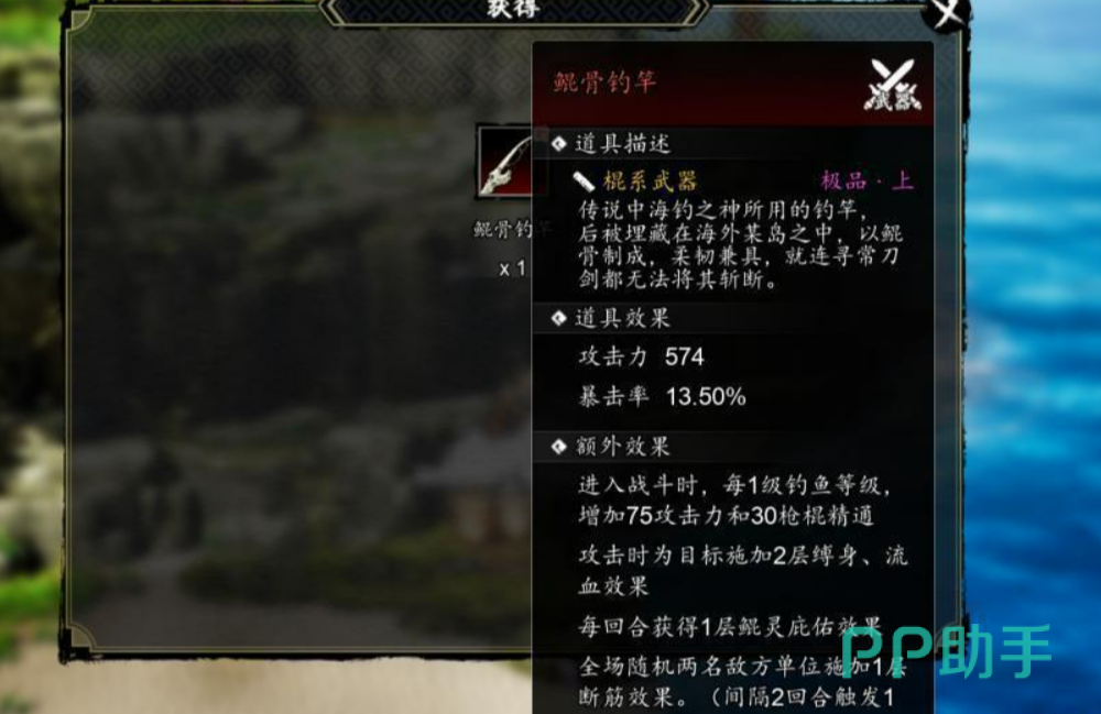 霓光岛设有两处常规宝箱:一处位于中部高地流浪武士身后;另一处需绕至高地背面,沿坡道下行后抵达。此外,该岛存在一个高门槛隐藏宝箱——需同时满足两项条件:持有蟹岛所得线索 + 钓鱼等级≥7级。开启后获得“鲲骨钓竿”,此道具不仅具备外观展示价值,更可为全队角色提供钓鱼等级加成效果。取得后返回蟹岛交予钓鱼翁,将获赠一本可提供500点钓鱼经验的典籍。