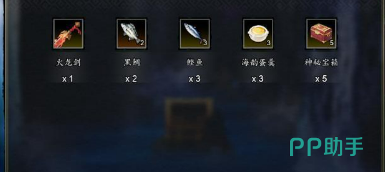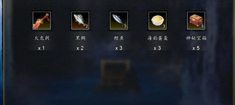 出海路线建议从地图左上角玉壁岛起始,逐岛向下推进。玉壁岛共设三个宝箱:其一藏于椰子树后方;另两个位于岛屿中上部区域,其中一只箱内即为八珍之一“火龙剑”。蟹岛亦含三只宝箱——入门后沿主路向上,在钓鱼翁身后草丛中可发现第一只;第二只位于左侧树干遮蔽处。此外,持续与钓鱼翁对话并以鱼交换物品,可逐步解锁“海外钓竿”,并获得“鲲骨钓竿”的线索提示;当钓鱼界面出现左下方位游动的特殊鱼类时,点击垂钓,将从鱼腹中取出一把钥匙,用于开启蟹岛左下角带锁宝箱,内含八珍“葫芦”。