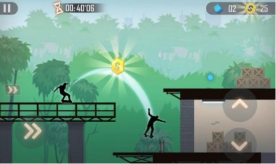 独特的画风,玩家将会沉浸在暗影的世界当中,凭借一滑板就能尽情享受每个城市当中的奇观。在城市当中将要随意而行,但是在危机四伏的城市中,总是会有很多的障碍物以及很多隐藏的危机,玩家必须要勇敢的去抵抗,这里涵盖了四大不同的场景以及40多个挑战的关卡,通过逐渐闯关的方式,解锁更高难度的关卡内容。