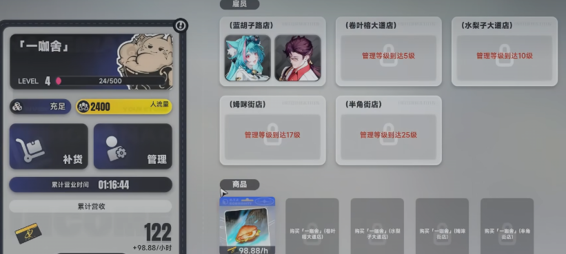 除都市闲趣外,房产系统同样是方斯增值的关键路径。当前开放的房产档位涵盖维纳公寓(20万方斯)至顶级豪华别墅(800万方斯)共多个层级。基础户型仅支持单人居住,而豪华别墅最多容纳5名角色,同时解锁专属隐藏副本入口。进入副本需消耗活力值,通关后可获取大量方斯及稀有材料,形成“活力→副本→方斯→房产升级→更多活力上限”的正向循环。而综合收益最高的长期经营方向,当属自主开店——店铺营收直接转化为“管理值”,该数值持续提升后,将触发经营倍率加成,进一步放大每日方斯入账。