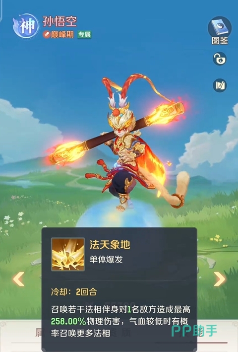 辅助技能同样具备高泛用性:“棒打乾坤”与“吹毛化罡”均为高倍率单体物理伤害技,配合培养资源倾斜后,常能实现一击清场小怪的高效表现。此外,孙悟空对职业搭配与队伍体系无硬性要求,适配战士、刺客、道士职业均可直接纳入首发阵容,属于低门槛、高回报的优质神兽选择。如需进一步强化输出上限,推荐配置“高级物爆”“高级物攻”类技能书,精准匹配其技能机制与成长路线。