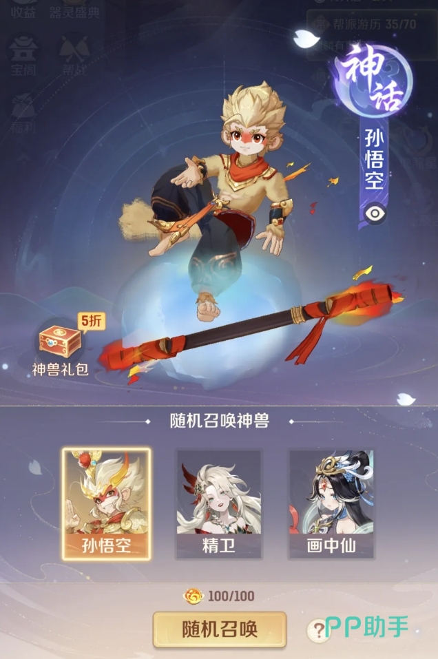 孙悟空并非通过副本挑战或限时卡池获取,而是依托游戏内通用兑换体系:消耗100枚神兽精魄,即可开启一次神兽召唤。该召唤池固定包含三只可选神兽——孙悟空、精卫、画中仙,每次召唤随机获得其中一只。若首次未命中目标,玩家可追加投入20枚神兽精魄进行二次抽取,大幅提升获取确定性。值得注意的是,神兽精魄获取路径极为丰富:日常任务、限时活动、成就奖励、登录福利等均设有稳定产出,常规积累周期约为14天;若恰逢新服开启,配套资源加成将进一步压缩筹备时间。