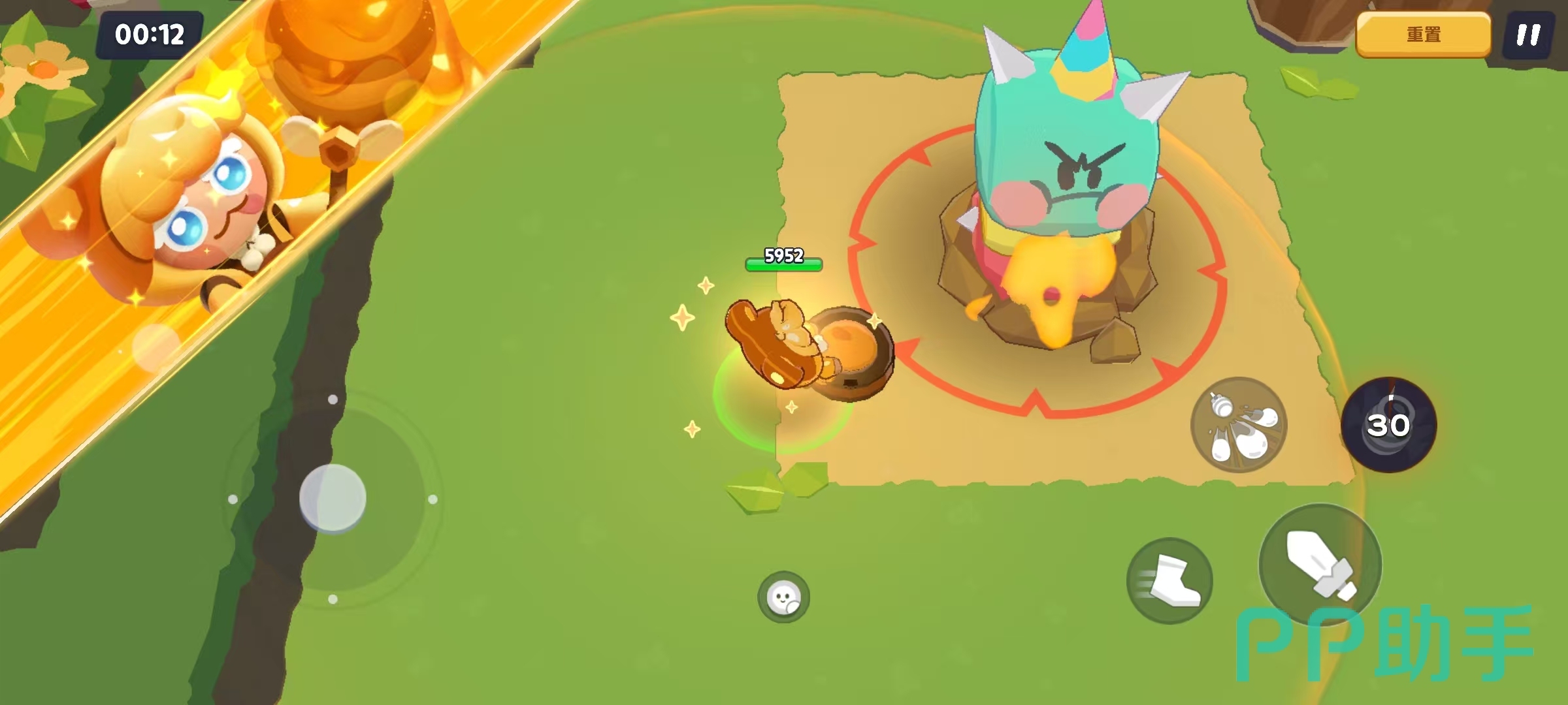蜜熊饼干的普通攻击“一滴滴的蜂蜜”可进行最多三次连击,每次伤害基于其防御属性的百分比计算。这意味着提升防御值不仅能增强生存能力,还能间接提高普攻输出。此外,该技能支持蓄力操作——通过旋转挥舞蜂蜜棒完成强力一击,蓄力后的伤害显著高于常规攻击。