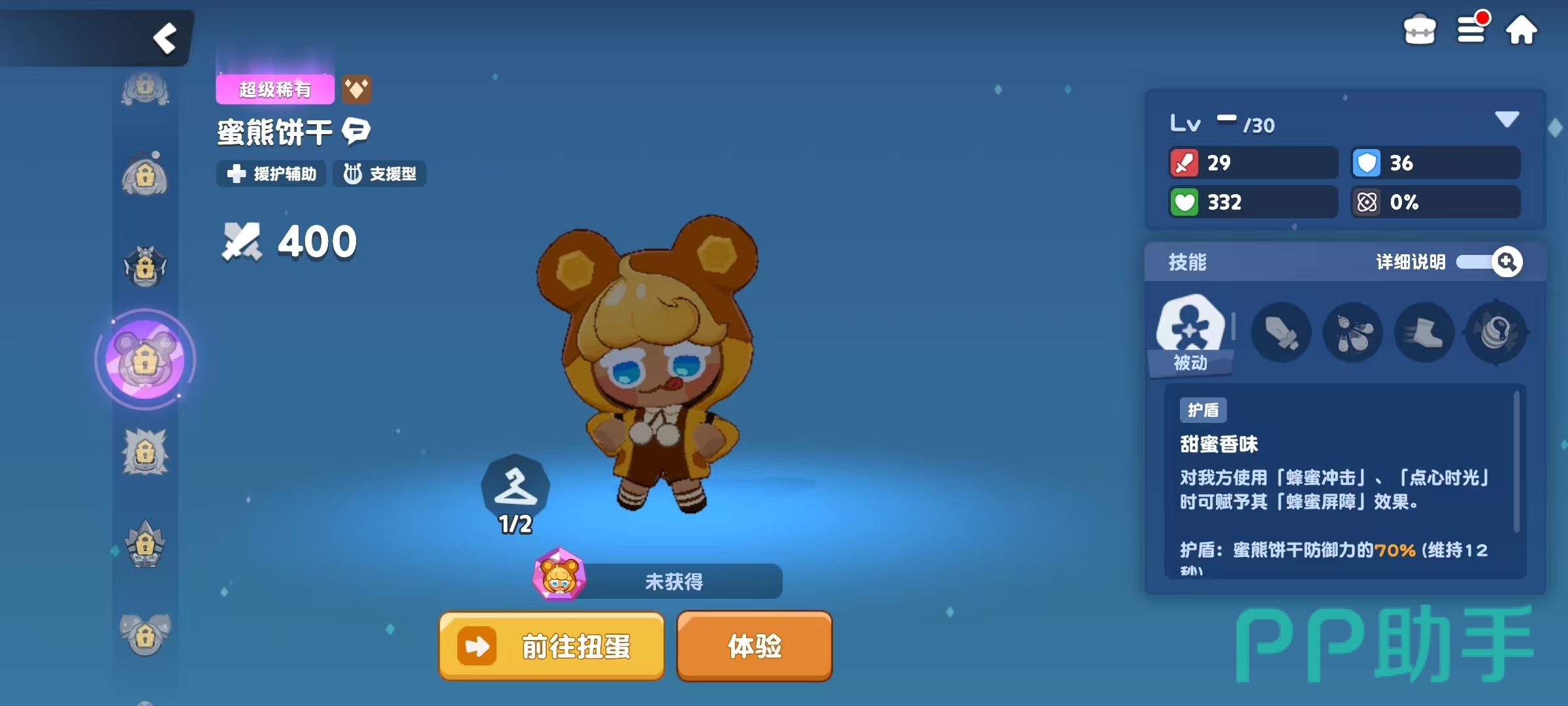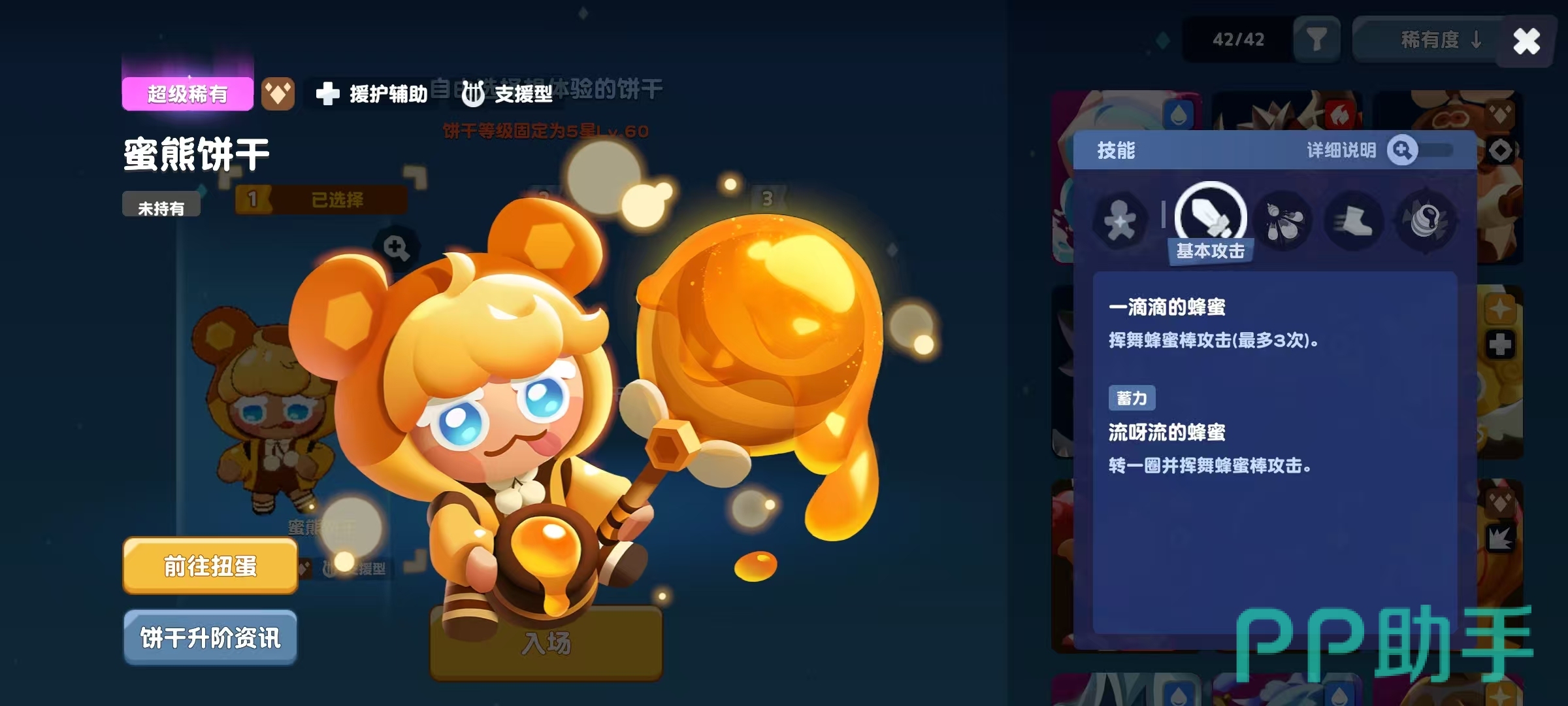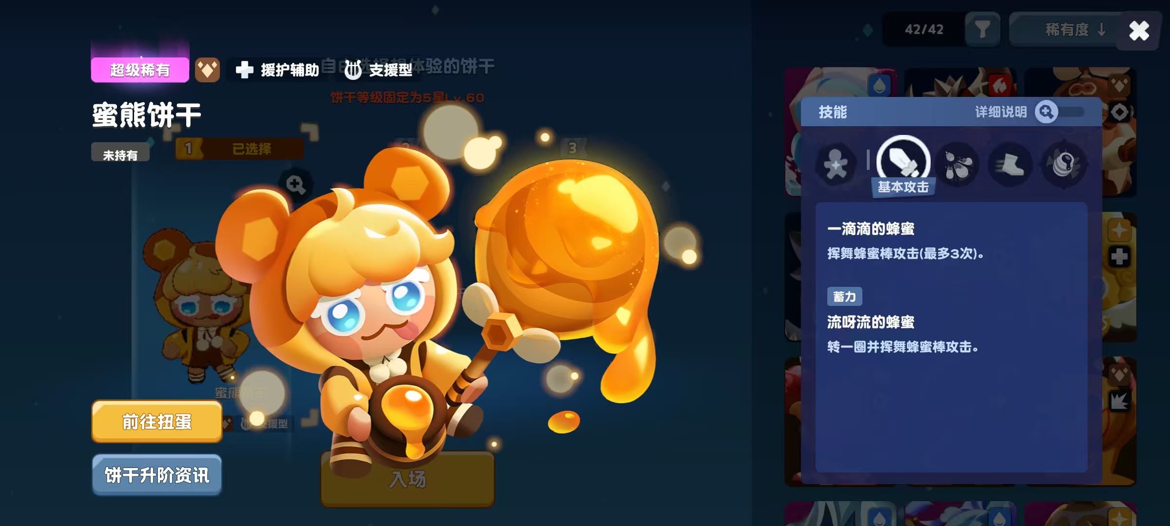 在《饼干人联盟》这款策略养成类游戏中,蜜熊饼干是众多玩家热衷收集的角色之一。作为超级稀有品质的支援型饼干人,蜜熊饼干不仅外形可爱,以蜂蜜融入面团烘烤而成,拥有小熊般圆润可爱的外观,更在战斗中扮演着不可或缺的辅助角色。
