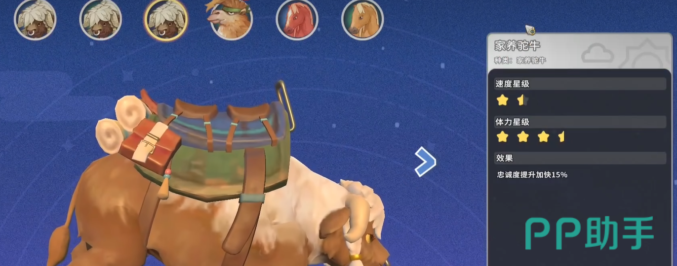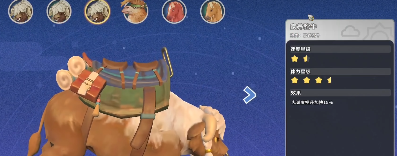 驮牛则代表另一种战略取向:空间扩容优先。其核心机制在于骑乘状态下自动扩展背包容量,无需额外购买或升级储物道具。该特性对资源导向型玩法具有不可替代性——单次远行可携带更多矿石、木材、草药与石材,大幅降低往返频次。同时,驮牛普遍具备更高的体力上限,支撑长时间野外作业,适合持续数小时的集中采集活动。