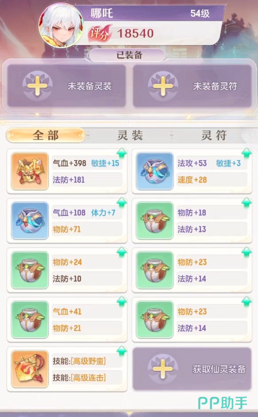 哪吒:同属法术输出体系,但整体强度优于小太白。初始属性更为突出,进阶后成长幅度显著提升。天赋技能【三头六臂】可释放“赤焰穿心”,且每当消耗20点怒气值即可额外追加一次攻击,结合范围技【风火连天】,能够对前排多个敌人造成可观伤害。辅助技能如【高级强力】、【高级野蛮】进一步强化了其输出稳定性,是中后期阵容中的强力选择。