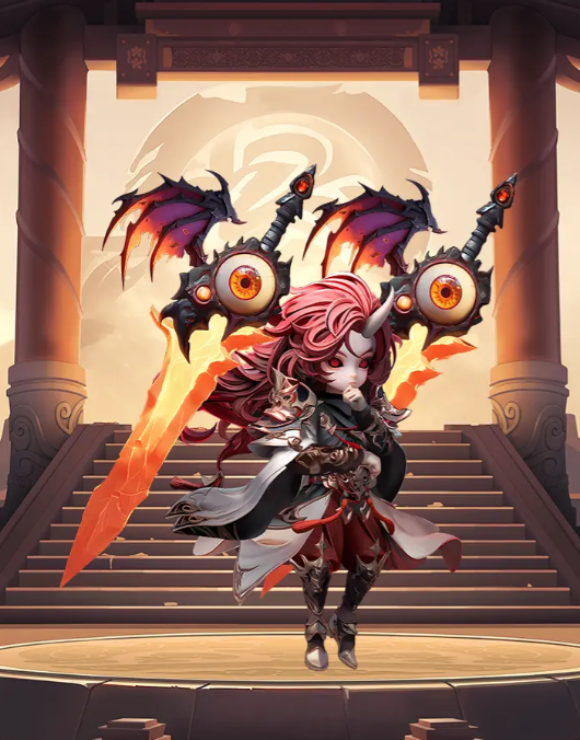高风险高回报型单体压制型战将。普攻消耗自身10%生命值,对单体目标造成伤害并获得“龙骨”效果(每层提升5%伤害);技能消耗20%生命值,对单体造成高额伤害并附加“绝义”——使其无法获取怒气。天赋支持协同输出:队友攻击时有25%概率追加一次普攻,且每层“龙骨”额外提升10%追击率;成功击杀目标后,立即恢复全部生命值,并追加一次等额伤害的攻击。3星后实现生命损耗转化:自身每损失1%生命值,伤害与吸血效果同步提升1%;晋升神将1星后,暴击命中时额外造成相当于目标10%最大生命值的伤害,并恢复自身10%最大生命值。