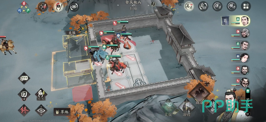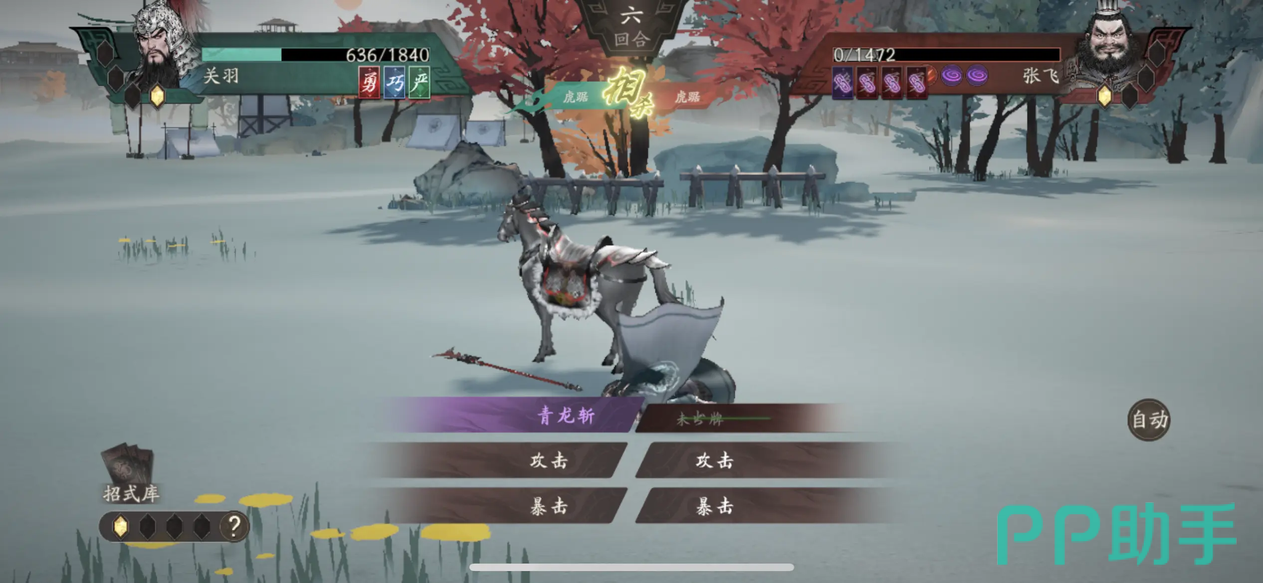 初始技能“燕人咆哮”可对范围内的敌军施加“嘲讽”与“高级低迷”状态,强制其立即向张飞发起攻击(无视射程限制),同时己方可正常反击。低迷状态使敌方造成的伤害降低20%,有效削弱对手输出。“万人敌”被动则在敌军于其攻击范围内结束行动时,对其及邻近陆地单位发动一次追击,造成相当于物攻50%的伤害。核心技“探囊取物”可对目标造成100%物攻伤害,并附加1回合“牵制”效果;若张飞身后1格为空,则直接将目标拉至该位置,实现精准控场。