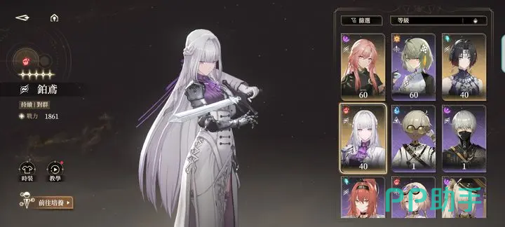 铂鸢是火属性近战主C,以高爆发与技能联动为主要输出手段。其技能结构围绕“统御状态”与“焚花”堆叠构建,普攻三段后进入强化状态,解锁派生技并获得短时霸体。“焚花”与“君主之势”机制提升技能伤害并延长强化时间,使其在短时间内实现高频率、多段打击。大招“怒放”伤害受焚花层数影响,数值上限高,清场能力强。铂鸢适合用作队伍核心输出位,搭配充能辅助或控制角色使用可形成稳定的爆发循环。