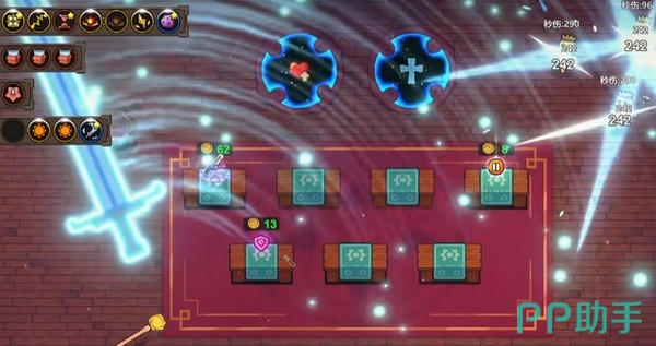 为了最大化飞剑输出效率,推荐装备“梅林帽子”以显著提高法力上限,同时搭配“疗愈腰带”实现生命恢复与法力续航的双重保障。在精准打击方面,“跟踪鼠标”法术可使飞剑自动锁定鼠标位置,实现高效集火。进入中后期阶段后,加入“多重散射”可大幅提升单次发射的飞剑数量,再结合增伤类遗物及法术强化组件,整体爆发能力将得到质的飞跃。