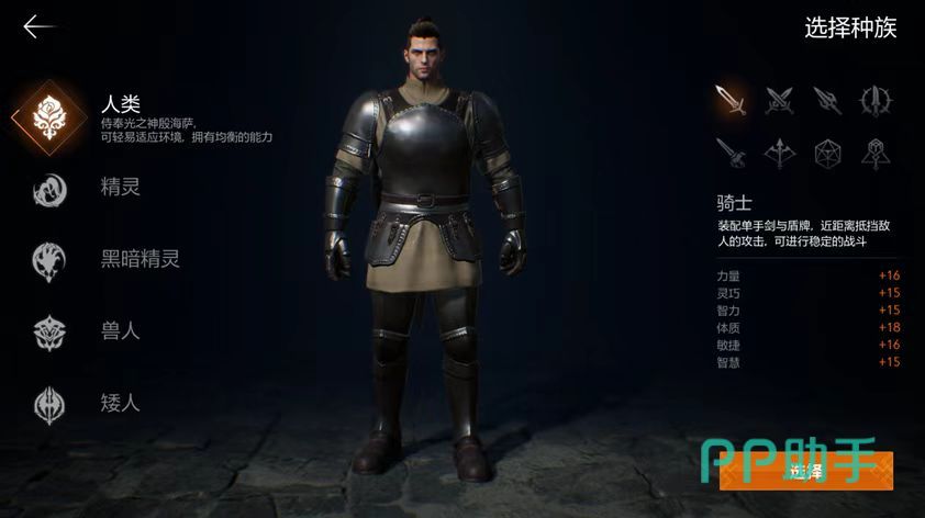 该作采用了“种族+职业”的双轨设定,骑士作为多个种族均可选择的职业,具备较高的适配性。不论是人类、兽人还是矮人,都能通过转职成为骑士。若玩家选择精灵族,则可打造独特的精灵骑士形象;而选择矮人则能塑造出更具力量感的矮人骑士。尽管不同种族在基础属性上略有差异,但整体强度保持平衡,不会对实战表现造成显著影响。