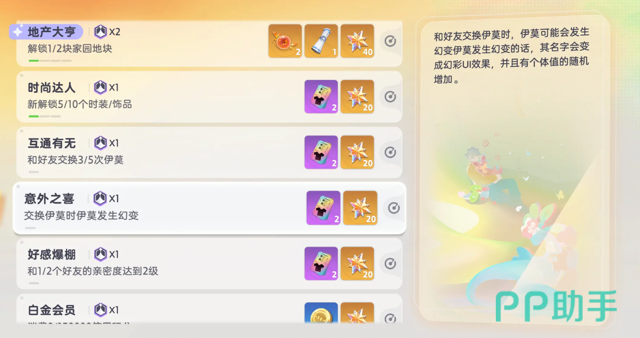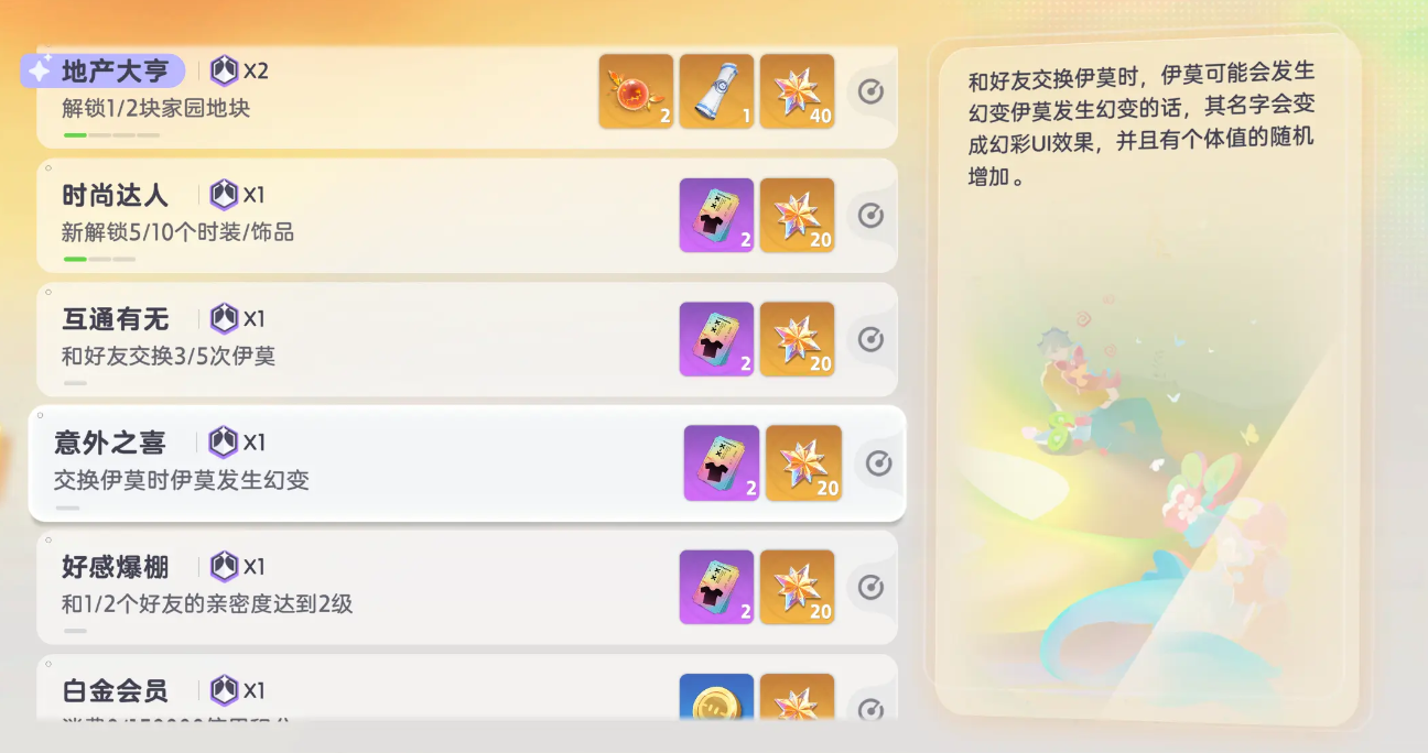 幻变是游戏中独有的交互型形态进化机制。当玩家与其他训练者完成伊莫交换时,有概率触发幻变:该伊莫名称显示为动态彩色字体,基础体力值提升,并可能实现品质跃升(如从普通→稀有→史诗)。该过程不可逆,且不依赖等级或道具,建议积极拓展好友列表,高频参与交换以提高触发率。