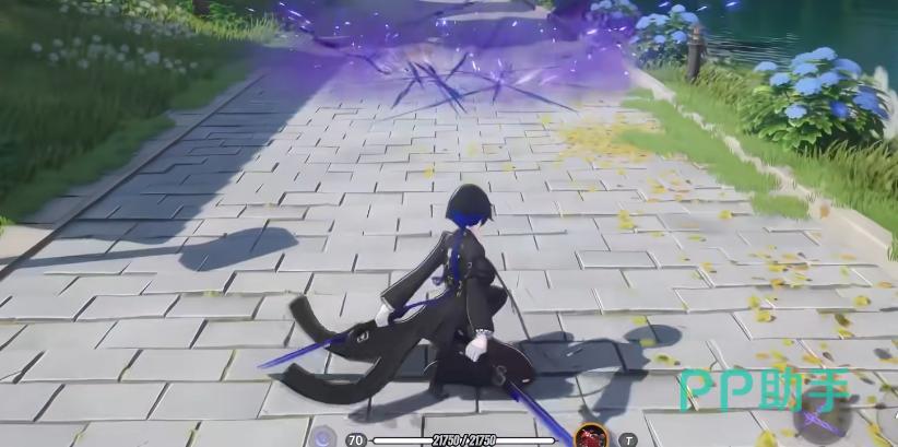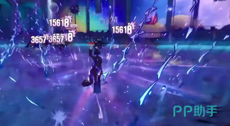 大招“左眼解放”为核心战略技能:开启后对范围内敌人施加暗属性伤害,并提升自身全伤害;同时赋予敌人“洞察”状态——当该目标被破韧时,额外承受一次高额真实伤害,视觉上表现为血条骤降。此外,大招期间解锁专属入场技“幻影移行”,累计使用2次后,再次释放大招即可重置次数。该技能作为切换入场动作,在角色登场瞬间自动触发(QTE援护则优先执行援护技,再接幻影移行)。