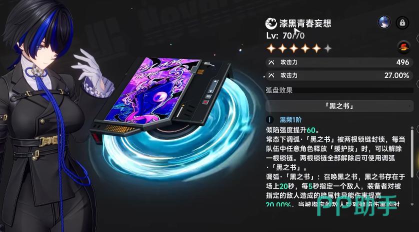 主弧盘推荐「漆黑青春妄想」:提供倾陷强度加成,常态维持2根锁链;每当队伍中任意角色释放援护技,即解除1根锁链;锁链全部解除后召唤「黑之书」,持续20秒,每5秒锁定一名敌人,使其受到达芙蒂尔的暗属性伤害提升。空幕选用「迪亚波罗斯」,专注提升暗属性异能伤害;主属性优先选择倾陷强度,副属性词条同样以倾陷强度为首要堆叠目标,其余属性可根据实际需求灵活调整。