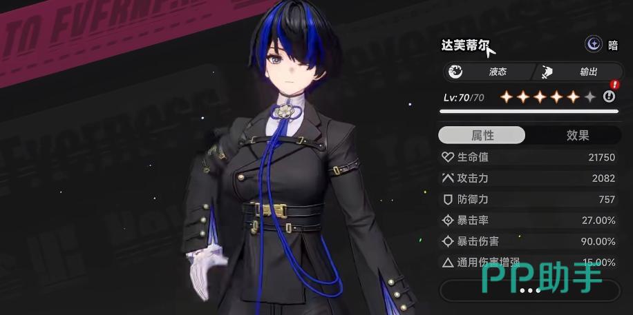 达芙蒂尔的核心职能为“倾陷增益”。在《异环》战斗体系中,所有敌人均具备韧性条(白条),而“倾陷”即指加速破韧进程。她自身为暗属性,可与灵属性触发“黯星爆炸”反应,造成高额范围伤害;与咒属性组合则生成“浊燃”持续伤害效果。当目标同时处于黯星与浊燃状态时,将激活“失谐”反应——直接削减目标当前韧性值的固定比例,并经达芙蒂尔技能强化后进一步降低其韧性条上限,最高可达30%。