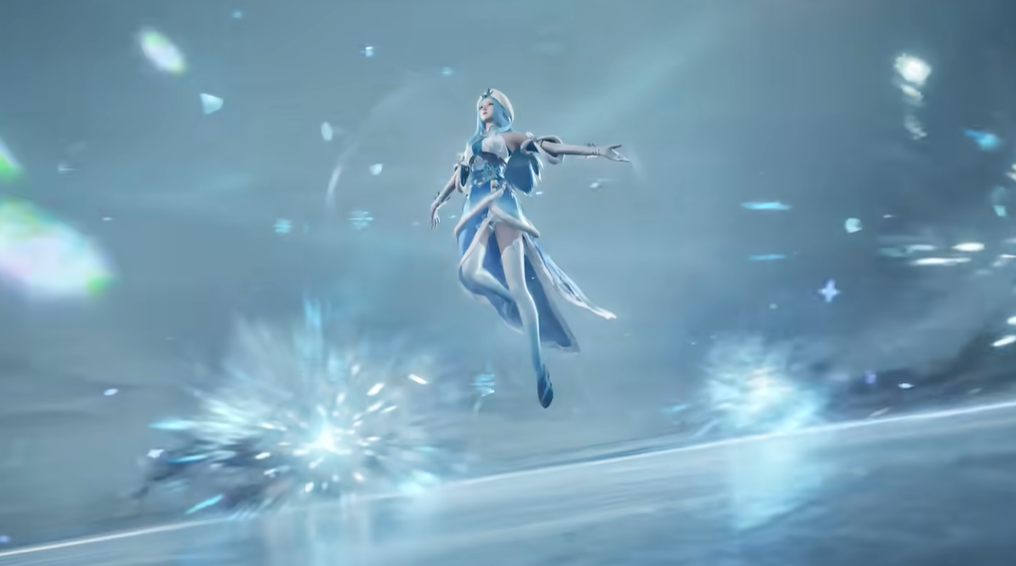 在玩法层面,“冰雪之华”完整继承王昭君本体技能逻辑,并通过特效优化进一步凸显控制节奏优势。被动“冰封之心”:阵亡后生成寒冰护盾,破裂时对周围敌人造成法术伤害并减速;一技能“凋零冰晶”:投掷冰晶碎片,范围伤害附带减速与视野扩张效果,适用于先手开团与地形压制;二技能“禁锢寒霜”:释放圆形寒霜区域,短暂定身范围内敌方单位,为队友创造集火窗口;大招“凛冬已至”:召唤大范围暴风雪,持续造成伤害的同时提供高额护盾增益,并显著降低敌方移速,巩固其团队控制核心定位。