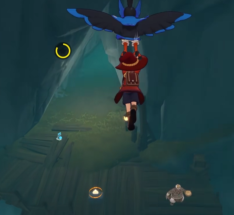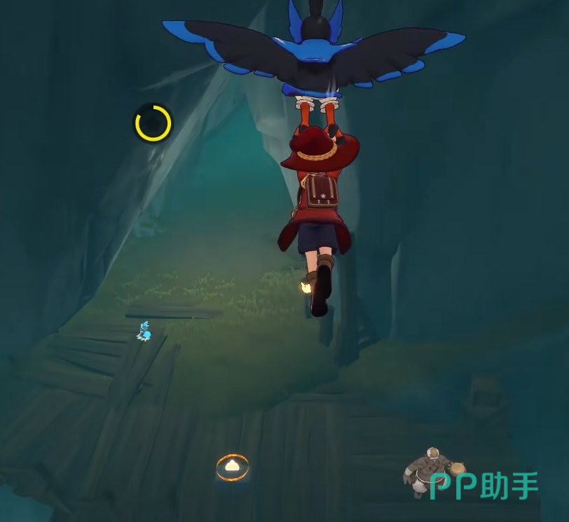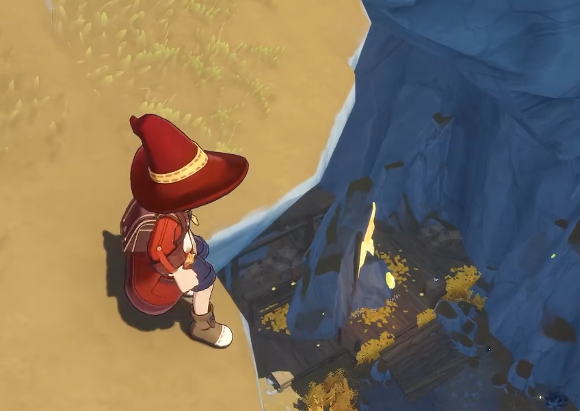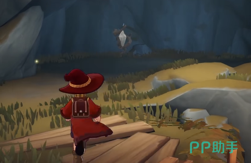 到达晨曦山后,面向西侧前进,途中会遇到一块显著的大石。继续前行,前方会出现一个深坑。此时需站在坑边,向左下方观察。