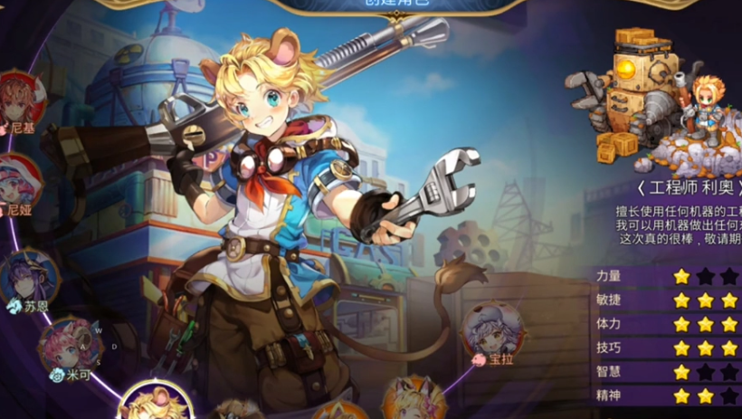 非常擅长使用多种特殊的机器,可以利用手中多种不同的零件来组装成武器使用,在力量属性上是偏弱的,但是有了武器的加成下,体力和明捷都是游戏中最高的排名了,算是输出职业中一个比较特殊的存在!