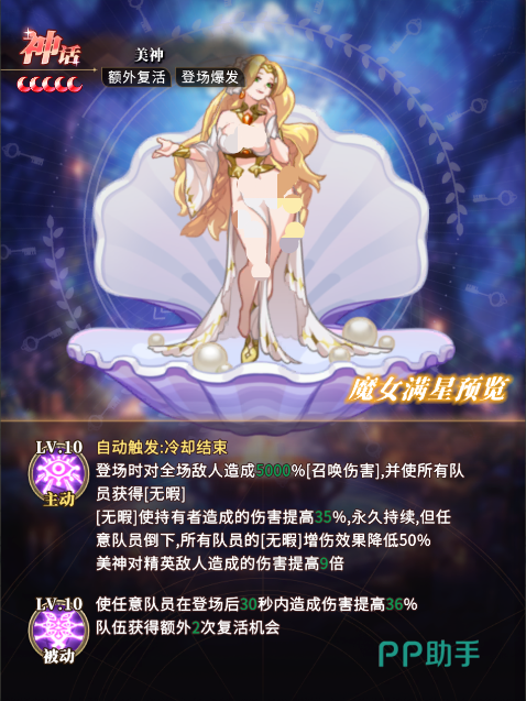 针对穿透流派阵容,美神同样具备极高适配价值。当队伍核心输出为月之魔女等高穿透角色时,其增伤效果可直接作用于穿透属性转化后的最终伤害,实现倍率放大。实战操作建议将其设置为首发角色,确保“无瑕”状态自战斗起始即覆盖全场,为后续技能衔接与资源调度奠定基础。
