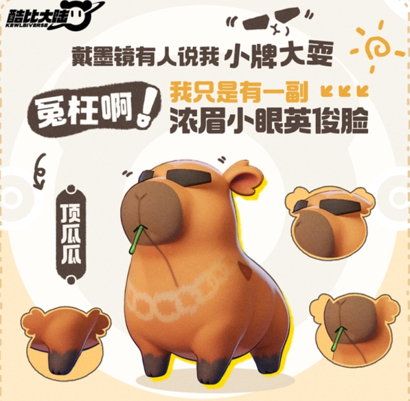 顶瓜瓜的别名顶个呱呱,它作为顶东东一族的领袖,据说能够单凭头顶之力托举起巨大的西瓜,而且还是所有顶东东心目中的理想形象,这位角色的设计灵感似乎来源于传统袍子与羊驼的结合体,给人一种可爱的同时又不失幽默感的独特外观,在浓密的眉毛下藏着一双小巧的眼睛,仿佛戴着一副时尚墨镜般酷炫。