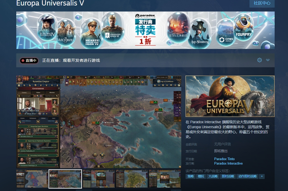 该游戏在steam平台的正式名称是Europa Universalis V,玩家可以搜索Europa Universalis来找到这一系列的作品。游戏本体和扩展包通常会定期打折,玩家可以在促销期间以更优惠的价格入手。