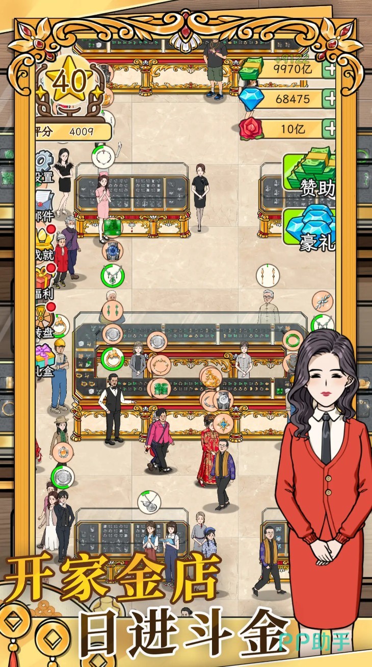 游戏设定围绕一家传承三代的珠宝家族展开:玩家扮演刚毕业的接班人,受家族支持开设独立金店。从基础门店起步,需自主规划空间布局、升级展示柜台、丰富黄金饰品库存,并通过合理陈列提升顾客进店转化率。所有操作节奏舒缓,无需高强度在线,适合碎片化时间体验真实金店运营逻辑。