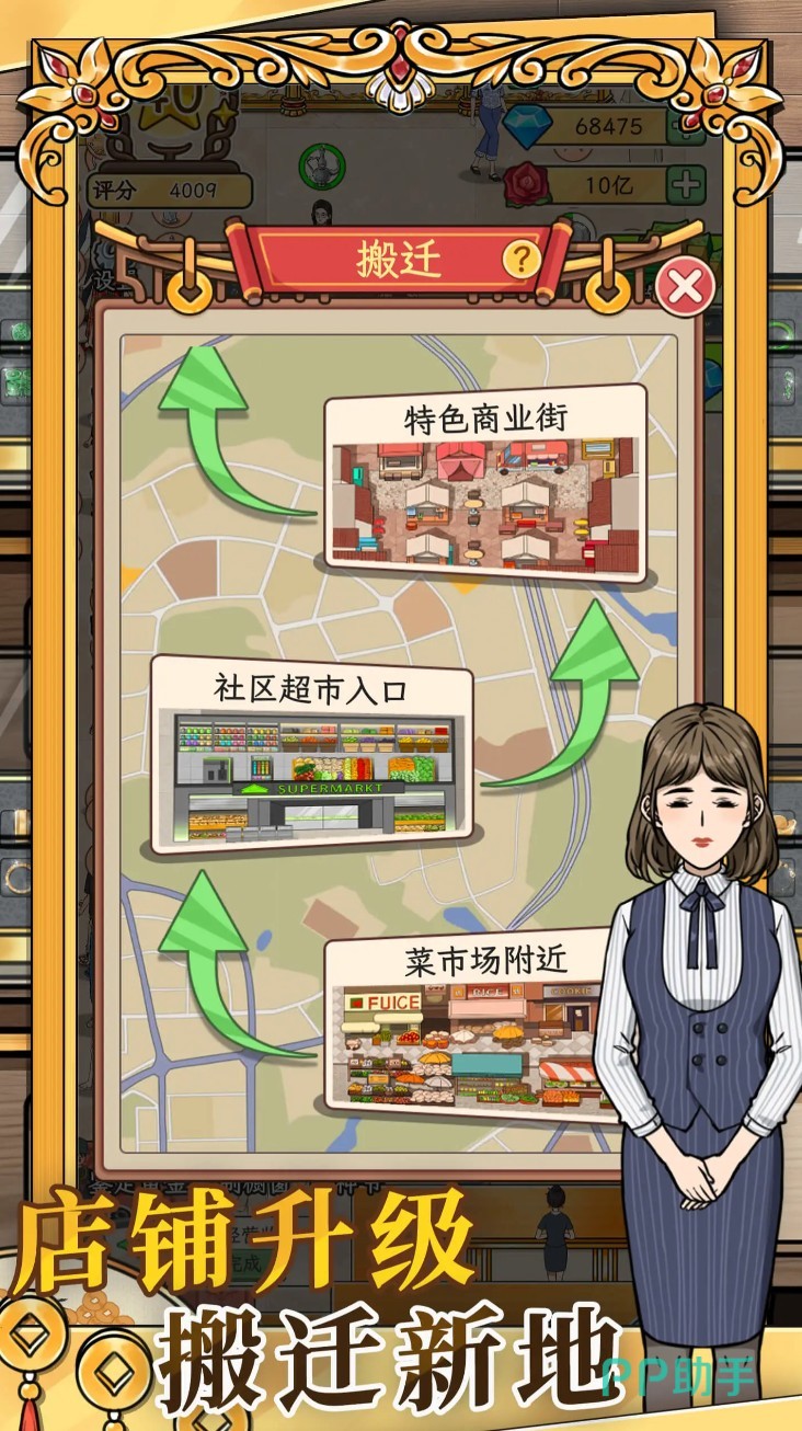 随着店铺经营评分稳步上升,玩家将解锁更多选址权限,例如入驻高人流商圈、社区核心出入口或文旅特色街区,逐步扩大品牌影响力。过程中还会随机触发经营事件,如节假日促销筹备、供应商临时调价、顾客定制需求等,考验玩家的资源调配与短期决策能力。