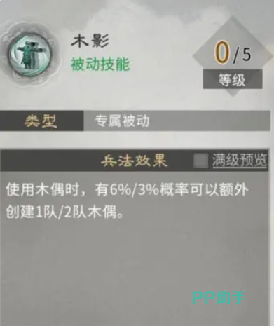 “木影”的主要作用在于提升单次召唤的木偶数量,从而强化布防能力或加快攻城节奏。配合“造物”使用时,可形成稳定的辅助输出链,在防守端提供持久压力,同时也可用于进攻推进,提高整体作战效率。