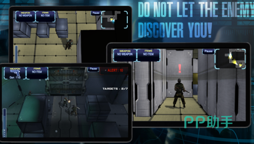 这是一款采用3D 画风的潜入闯关游戏。在游戏中,玩家会化身为一名特工,悄悄潜入敌方军事基地。主要任务是独自深入基地,营救人质并消灭恐怖分子。配合上紧张刺激的故事剧情,能让玩家有很强的代入感,玩起来十分带劲。在游戏过程中,玩家需要拾取不同的道具,来帮助自己顺利完成任务。游戏关卡丰富多样,每一关都能给玩家带来不一样的冒险体验。
