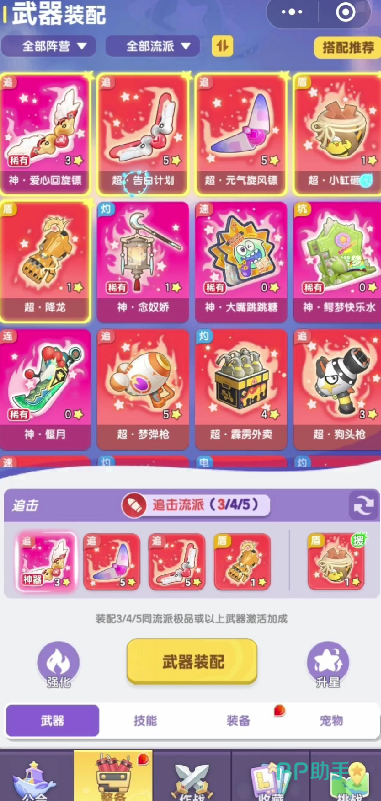 追击流派的核心武器总共有两个,首个是元气旋风镖,该武器会针对,当前目标的最大生命值百分比,进行一次伤害判定,百分比越小,伤害就越高,配合爆速回合,玩家可以触发一次范围型的aoe爆发伤害。