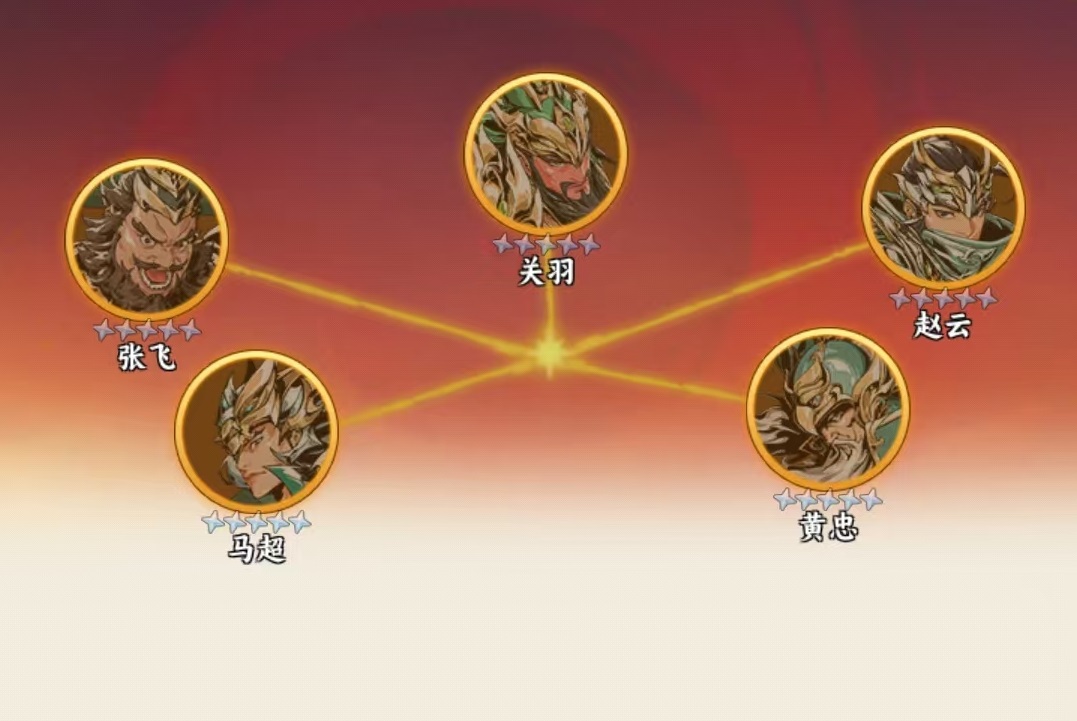 在羁绊协同方面,赵云同时激活【蜀将】与【五虎上将】双重羁绊。其中【五虎上将】为最优解:五人齐上阵可同步提升四项基础属性,并使全体追击伤害提高50%;每次追击成功额外获得一层【战意】,每层提升追击触发概率;累计满五层【战意】后,下一回合自动获得【破军】效果,大幅提升穿透属性。鉴于赵云的输出高度依赖穿透能力,该羁绊不仅契合其机制,更形成正向循环。剩余阵容位推荐补足其他蜀将,以进一步激活阵营加成。