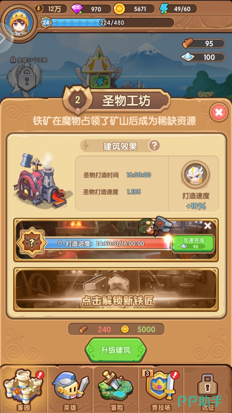 当玩家完成的任务数量足够时,魔力幻想便会在家园玩法里自动帮玩家解锁圣物工坊。该工坊主要用于制作圣物,每制作一次所需时间为16小时,且每位玩家仅有一个空位栏可进行圣物制作。待圣物制作进度条走完后,玩家便可领取制作出的圣物,并为角色装备。