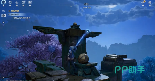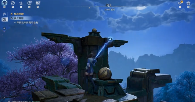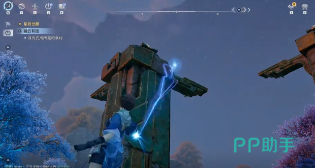 起始位置保持不动,地面散落的碎片暂不处理。将视角转向左侧,定位第一根可交互石柱,靠近后使用攀爬指令登顶,触发顶部铁球旋转装置。旋转方向无硬性要求,顺时针或逆时针均可,核心判定标准为:对应地面图腾标记成功点亮。完成首处机关后,视线沿左上方移动,锁定第二根石柱并重复攀爬—旋转流程,确保第二枚图腾同步激活。随后继续向左上方搜寻第三根机关柱,完成最终旋转操作。三处图腾全部亮起后,前方石门将自动开启。