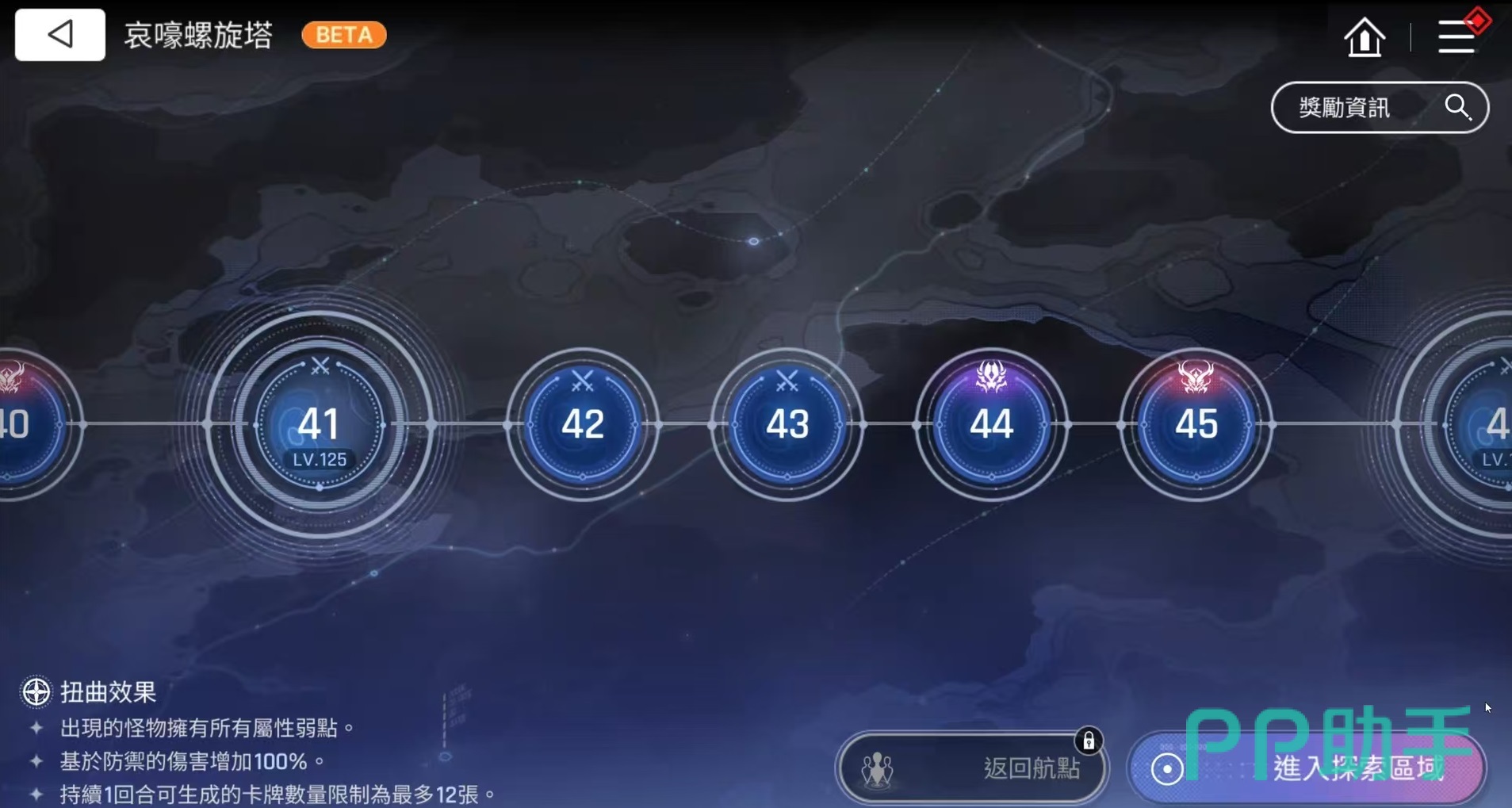 玩家角色等级达到45级后,即可通过模拟活动入口进入哀嚎螺旋塔。由于国服尚未正式公测,当前开放层数为测试版75层,官方规划完整版本共设150层。副本结构遵循每5层配置一名Boss、每5层发放阶段奖励的固定节奏,全程不设行动回合上限,允许玩家以稳健节奏推进战局。