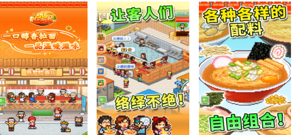 开罗拉面店是吃货朋友都不可错过的像素经营类游戏,使用了像素风的美术也能让美食呈现的色香味俱全,很有意思的开店玩法跟像素风原画辨识度更高,可爱生动的UI呈现也不会让开罗游戏粉丝失望,自由组合食材和配料制作拉面的设定也是一绝,充满娱乐性的经营+烹饪类的玩法也让游戏更显魅力。
